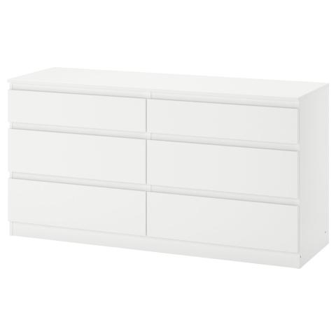 KULLEN commode 6 tiroirs, blanc, 140x40x72 cm Une commode toute simple au style épuré qui trouve facilement sa place dans une chambre ou toute autre pièce. Il y a de la place pour vos vêtements et le linge de lit. Psst ! N'oubliez pas de la fixer au mur.