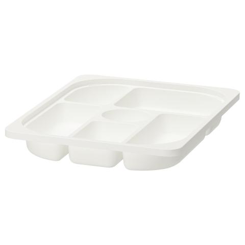 TROFAST bac avec compartiments, blanc, 42x30x5 cm Ce bac à compartiments permet à votre enfant de mettre de l'ordre et de ranger ses crayons, perles, ficelles et autres collections. Convient parfaitement aux structures TROFAST. Il est en plastique résistant dont 50 % est recyclé.