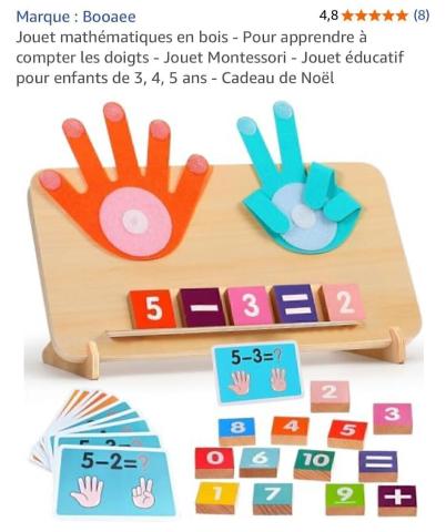Jouet mathématiques en bois - Pour apprendre à compter les doigts - Jouet Montessori - Jouet éducatif pour enfants de 3, 4, 5 ans - Cadeau de Noël