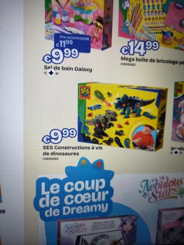 Ce produit est extrait d'une liste de cadeaux (Anniversaire, Noël, ...) déposée sur Kadolog. Kadolog permet de créer des listes de cadeaux (Anniversaire, Noël, ...) en toute liberté. Il est possible d'ajouter toutes vos envies cadeaux et de recevoir les dons directement sur votre compte. Avec les dons reçus, vous êtes alors libre d'aller acheter vos produits (comme ce 'Construction de dinosaures SES ') où et quand vous le souhaitez.