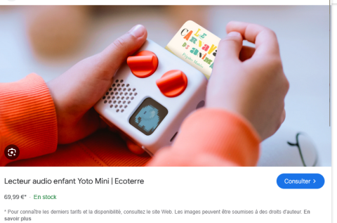 Conteuse Yoto. Pour écouter des histoires, comptines, etc. Elle est conseillée de 3 à 12 ans!