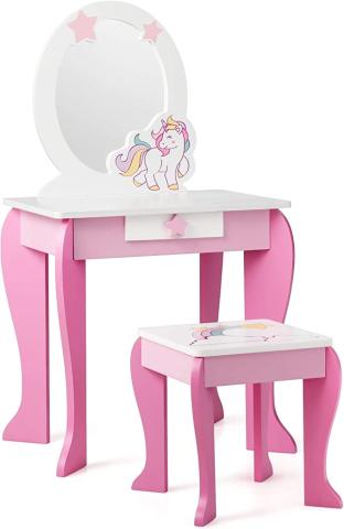 COSTWAY Coiffeuse pour Enfant Table de Maquillage avec Tabouret, Miroir Détachable et 1 Tiroir de Rangement Style Princesse Jeu d'Imitation pour Filles (Rose) : Amazon.com.be: Cuisine et maison