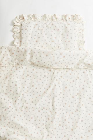 H&M Adorables. Cot duvet cover set in soft cotton percale with an all-over print. One pillowcase with a scalloped frill trim around the edges and an envelope opening at the back. The H&M Adorables collection is a curated selection of high-comfort, quality pieces with a timeless appeal.