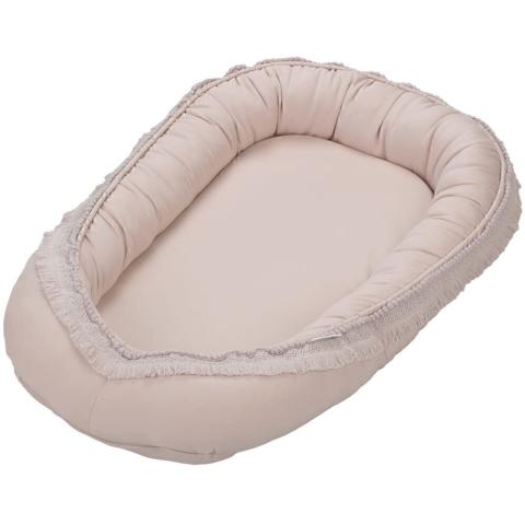 Het babynest heeft veel functies: - in een babybedje beperkt het de ruimte, waardoor de baby zich veiliger voelt - Zorgt voor een veilige slaap, omdat de zachte zijkanten voorkomen dat het uit de cocon rolt, - Na het losmaken van de touwtjes is de koker een perfecte commode of een minimatje om op de buik te spelen en te oefenen, erg belangrijk voor de ontwikkeling van het kind.