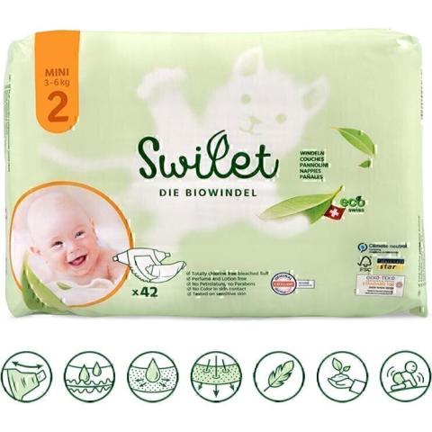 Swilet - La couche bio taille 2 Mini 3-6 kg (42 pièces) sachet