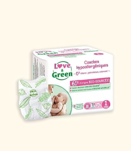Les couches écologiques Love & Green, certifiées Ecolabel, sont plus saines et plus naturelles. Aussi disponibles en abonnement. Taille naissance à T6.