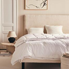 Notre couette 2 en 1 à utiliser toute l'année : à séparer ou à assembler, pour obtenir une couette tempérée ou une couette chaude.