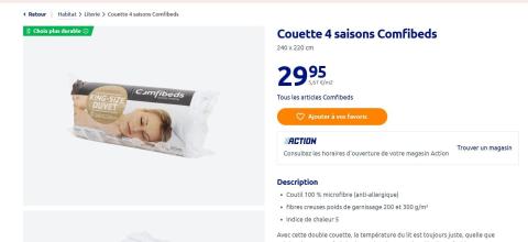 en toute liberté. Il est possible d'ajouter toutes vos envies cadeaux et de recevoir les dons directement sur votre compte. Avec les dons reçus, vous êtes alors libre d'aller acheter vos produits (comme ce 'Couette 4 saisons - 2 personnes