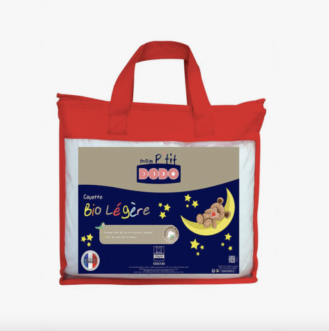 La couette issu de l'agriculture biologique légère P’tit dodo accompagne bébé dans ses nuits grâce à son TOG 4 pour un niveau de chaleur léger et son enveloppe en coton issu de l’agriculture biologique pour plus de douceur, de confort et de chaleur !