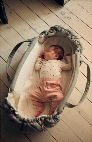 Le couffin innovant qui se transforme en nacelle et en tapis d'éveil et qui s''adapte facilement à toutes les poussettes