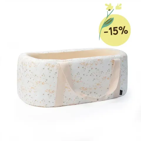 Pour les premiers mois du tout petit, quoi de mieux qu’un cocon douillet transportable partout ? De la chambre au salon, du salon à la maison de vacances… En plus de ses poignées, le couffin KUKO – en mousse et coton biologique – est doté, en option, d’un support en bois naturel et se transforme en un clin d’œil en berceau au doux balancement.