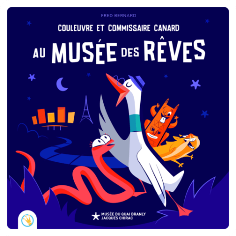 La curiosité n’est pas un vilain défaut, loin de là ! Alors, quand Couleuvre, lassée des bords de Seine, explore de nuit le musée des rêves, l’aventure commence ! Accompagnée par le célèbre Commissaire Canard, qui connaît le musée et ses collections comme sa poche, elle y rencontre des animaux de tous genres et de tous pays. Un caméléon en forme de bijou, une tortue à long cou peinte sur une écorce, un phoque juché sur un couteau aiguisé…. Tous lui font bon accueil, partagent volontiers leur histoire et n’hésitent pas à l’emmener aux quatre coins du monde. A l’abri sous l’aile de Canard, sur un simple Abracadacoincoin, Couleuvre parcourt ainsi les quatre continents. Et la quiétude du musée est bientôt remplacée par l’agitation d’un marché indien, le vrombissement des moustiques dans la jungle ou la douceur d’un printemps au Japon… C’est cela la magie du musée des rêves ! Que signifie le mot kangourou ? En quoi étaient faits les premiers anoraks d’Alaska ? Comment lire les peintures aborigènes ? 12 histoires amusantes et d’une grande richesse documentaire qui renseignent sur les relations étonnantes qu’entretiennent hommes et animaux depuis la nuit des temps... Lunii info : Ce musée des rêves existe bel et bien ! Il s’agit du musée du quai Branly - Jacques Chirac (Paris) qui, avec la complicité de Lunii et de l’auteur Fred Bernard, fait vivre le temps d’un livre audio, masques, totems, sculptures et autres œuvres animalières pour familiariser les enfants avec la diversité de ses collections. Un livre audio réalisé en partenariat avec le musée du quai Branly - Jacques Chirac.Et pour aller plus loin, téléchargez et imprimez votre carnet de visite du Musée des rêves !lien vers le PDF