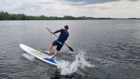 .... ou juste pour apprendre à tenir sur une planche sans voile. Au vue des prouesses sur cette photo, pour Bertrand c'est vraiment nécessaire!
