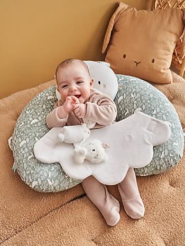 Confortablement installés sur ce coussin bien moelleux, les petits pourront observer leur nouveau petit monde et faire de merveilleuses découvertes grâce aux jouets. Un adorable coussin qui va émerveiller bébé.