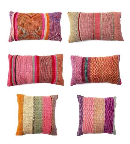 Des coussins colorés pour amener un peu de couleur au salon. Evelyne les adore.