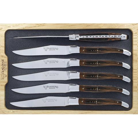 Set de 6 couteaux de table Laguiole en Aubrac Manches : Cep de Vigne Taille totale : 23 cm Taille de la lame : 11 cm Taille du manche : 12 cm