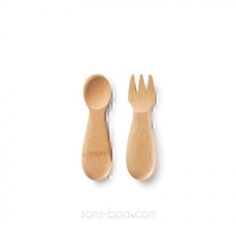 Couverts courts Bambin 12 mois en bambou pour apprendre à manger seul en toute sécurité.