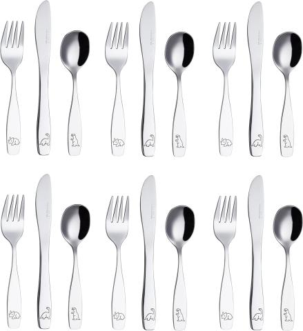 Exzact Couverts enfant en inox 18 Pièces: 6 x Fourchettes, 6 x Couteaux, 6 x Cuillères