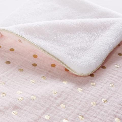 Couverture bébé rose et blanche motifs à pois dorés 75x100