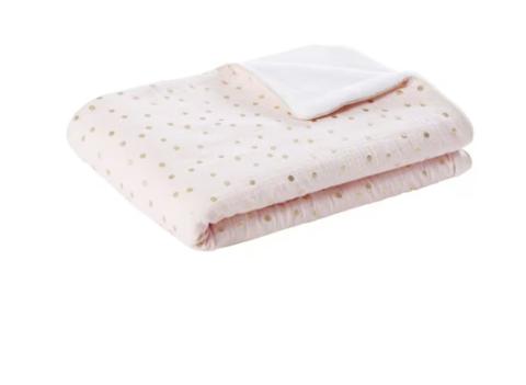 Couverture bébé rose et blanche motifs à pois dorés 75x100
