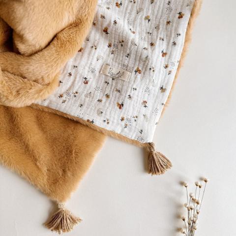 Couverture Chaude - Motif Fleurs d'Automne - Fabrication française dans l'atelier de 12 Avril, créateur de douceurs pour bébés