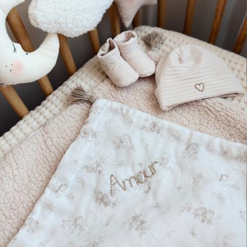 en toute liberté. Il est possible d'ajouter toutes vos envies cadeaux et de recevoir les dons directement sur votre compte. Avec les dons reçus, vous êtes alors libre d'aller acheter vos produits (comme ce 'Couverture demie saison - Motif Inséparables - Sherpa Beige