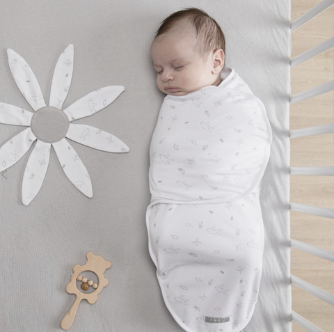 Une couverture à emmailloter toute douce pour apaiser bébé pendant son sommeil. Toute en jersey, elle lui offrira un sentiment de sécurité et de sérénité, qui l'aideront à mieux dormir.