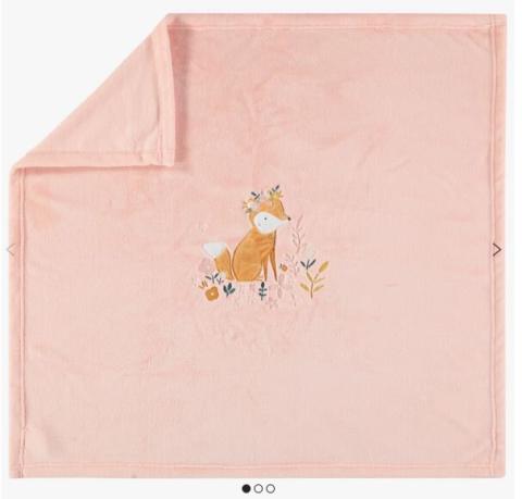Couverture en sherpa unie. Renard brodé devant avec motifs floraux.