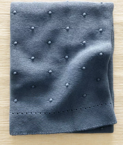 Couverture enfant en maille de coton avec bord côtelé.