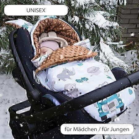 Couverture enveloppante siège bébé hiver 80x87 cm - couverture bébé chancelière pour voiture sac d'hiver coton Minky Caramel Safari
