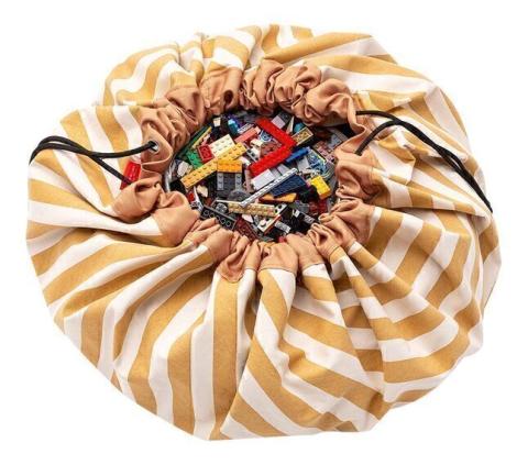 Cette couverture de jeu couleur jaune moutarde se transforme en sac de rangement.