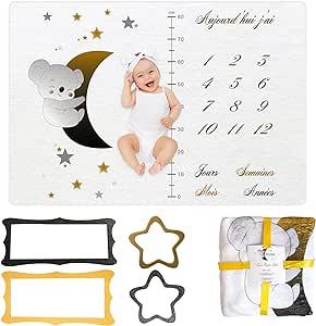 Couverture Étape Bébé en Français | Tapis Evolution | Garçon ou Fille, Unisexe | Lune, Étoiles, Koala | Suivi Âge & Taille | Cadeau Naissance | Doux & Confort | 120x100cm : Amazon.fr: Bébé et Puériculture