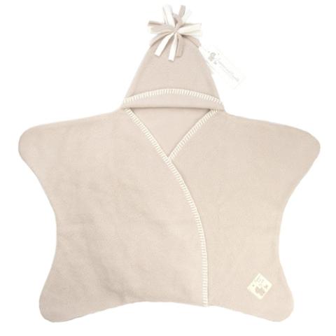 Couverture pratique en forme d'étoile ! Une couverture de couleur beige, en polaire de qualité, douce et chaude, munie d'un petit bonnet très mignon. La Couverture Etoile polaire tout en 1 pour bébé.