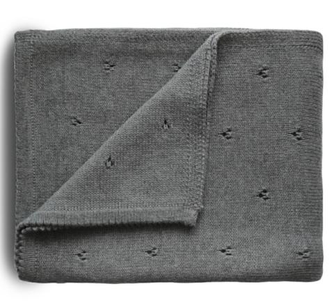 Couverture de la marque Mushie. Conçue en coton biologique, en tricot ultra douce, chaude et respirante pour border bébé.