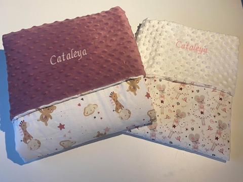 Couverture personnalisée et brodée au prénom de l’enfant. En cours de création avec : Cré’Abby.