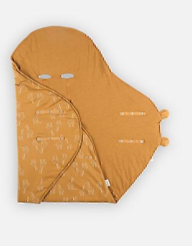 La couverture promenade en jersey de coton bio ocre imprimée girafes de la collection Mix & Match est idéale pour l’entre-saison car elle recouvre bébé de douceur et le garde bien au chaud, tout en laissant circuler l’air.