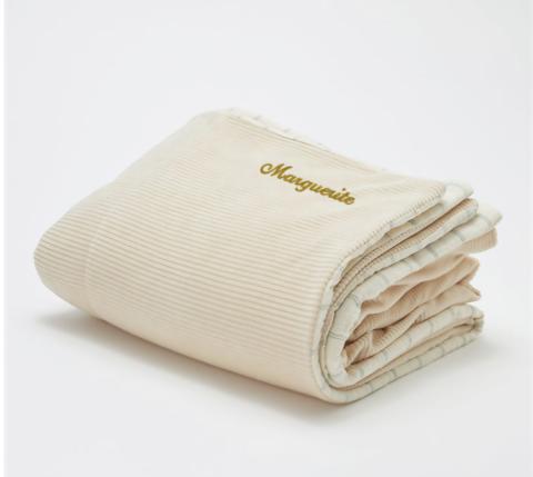 en toute liberté. Il est possible d'ajouter toutes vos envies cadeaux et de recevoir les dons directement sur votre compte. Avec les dons reçus, vous êtes alors libre d'aller acheter vos produits (comme ce 'Couverture réversible - prénom - Vert
