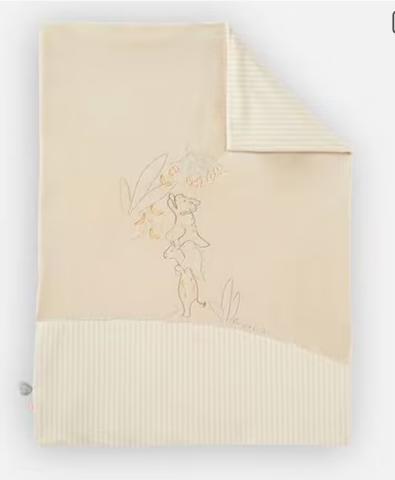 La couverture 75 x 100 cm en Veloudoux beige de la collection Tiga, Stegi & Ops avec ses personnages tendres rebrodés garantit une grande douceur et infinie tendresse. Composée entièrement de Veloudoux, elle est de taille idéale pour porter bébé dès sa naissance. Pratique à transporter et à mettre dans le buggy ou dans le siège auto, cette couverture est un régal de douceur.