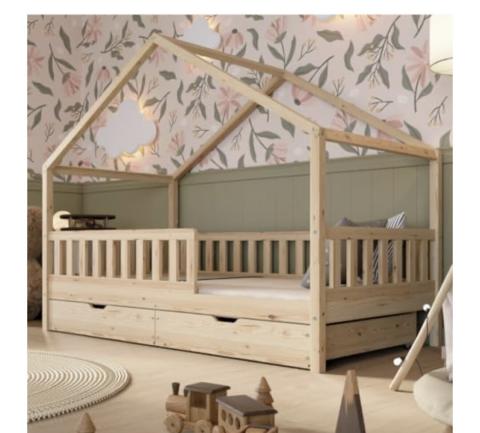 Crazy Pine Crazy House Cabin Bed with Drawers 200 x 90 cm – Natural Wooden Children's Bed with Barrier – Montessori Floor Bed with Extra Storage Space and Removable Barrier : Amazon.com.be: Home & Kitchen