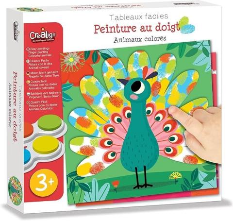Achetez Créa Lign’ | Peinture au Doigt - Animaux Colorés | Activité Manuelle dès 3 ans | 6 Tableaux à Décorer + 1 Encreur 4 Couleurs Lavable + Chevalet | Peinture Facile et Propre pour Enfants : Peinture au doigt : Amazon.fr ✓ Livraison gratuite possible dès 25€