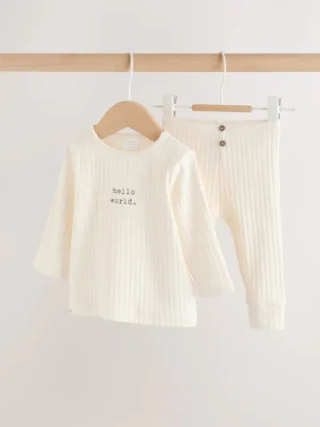 Crème - Hello World haut et Leggings Bébé Ensemble - taille 0 mois, 1 mois ou 3 mois.