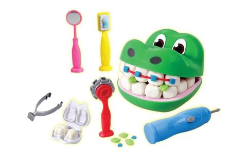 Les dents du crocodile ont besoin d'être soignées ! Attrape tes outils et ta pâte à modeler pour aider le pauvre dentiste dans cette périlleuse opération !