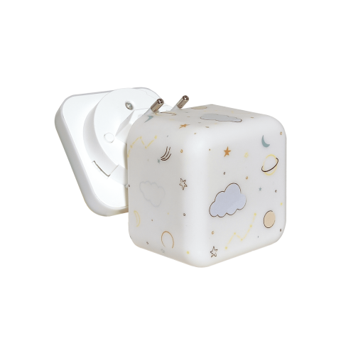 Cube B™ - Space is a child-safe, glowing night light for babies and kids, with a gentle light perfect for naps and bedtime.