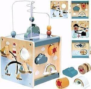 Cube d'activités en Bois de Labyrinthe avec Motifs océaniques