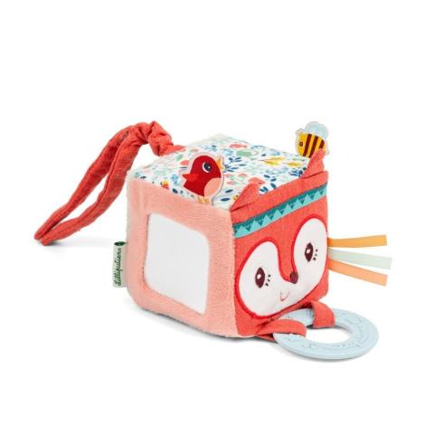 Ce cube d'activités en tissu pour bébé de 8 cm propose une activité sensorielle sur chaque face ! Idéal dès 6 mois, avec Alice la renarde et ses amis. A découvrir ! : METADESCRIPTIONTXT