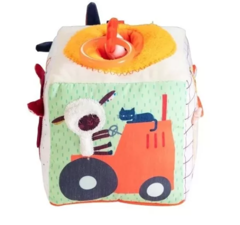Le Cube sonore d'activités ferme contribue au développement de la motricité, de l'imagination, de la réflexion, de l'ouïe et de la vue de bébé .Dès 9 mois.