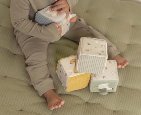 1, 2, 3, 4. Votre petit bout s'amuse à attraper, à empiler ou encore à mordiller ces chouettes cubes en tissu de Little Dutch. Avec différentes textures, un miroir et des étiquettes : une panoplie d'activités à découvrir !