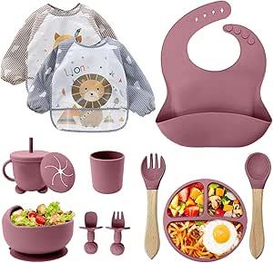 CUBTEM Assiette Bebe,Lot de 12 Set Repas BéBé, Bol Cuillere Bebe,Bavoir Silicone Bebe,Assiette Ventouse Pour BéBé,Enfant Set Couverts Vaisselle Pour Sevrage Manger : Amazon.fr: Bébé et Puériculture
