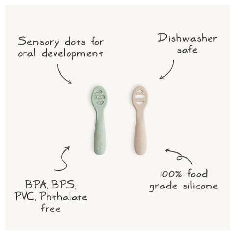 Faites de la première bouchée de votre bébé une expérience douce et confortable avec la cuillère bébé First Feeding - 2 pièces de Mushie. Ce set pratique comprend 2 belles cuillères, spécialement conçues pour les différentes étapes de l'apprentissage de l'alimentation. La première cuillère (Étape 1) a une surface lisse, parfaite pour donner des purées fines comme la compote de pommes ou le yaourt. Lorsque votre enfant est prêt à passer à l'étape suivante, vous pouvez passer à la deuxième cuillère (Étape 2), qui comporte des fentes. Ces fentes facilitent l'absorption d'aliments plus épais, tels que le porridge ou la purée de légumes.