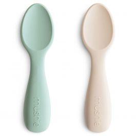 Avec la magnifique cuillère enfant - 2 pièces de Mushie, l'apprentissage de l'alimentation devient une expérience agréable pour votre petit trésor et pour vous-même.